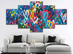 Love Colorful Hearts Graffiti Wall Art Canvas Decor Printing