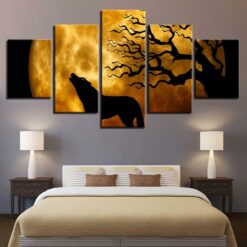 Night Wolf Howl 5 Piece Canvas Art Wall Decor