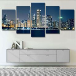 Night View Chicago Skyline Wall Art Canvas Decor Printing
