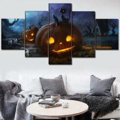 Pumpkin and Cat 5 Piece Canvas Art Wall Decor