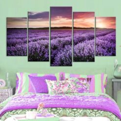 PURPLE LAVENDER FLOWER FARM 5 Piece Canvas Art Wall Decor