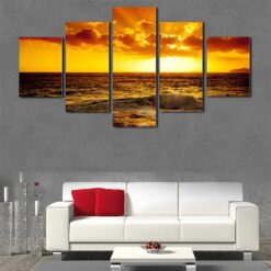 Scenery: Seascape Sunset – Nature 5 Panel Canvas Art Wall Decor
