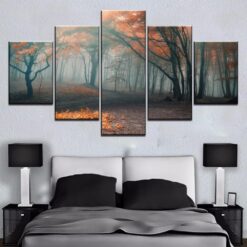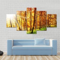 Sun In The Autumn Forest – Nature 5 Panel Canvas Art Wall Decor