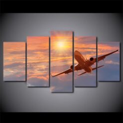Sunset And Airplane – Nature 5 Panel Canvas Art Wall Decor
