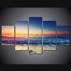 Sunset Beach Ocean Landscape Nature – 5 Panel Canvas Art Wall Decor