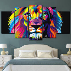 Beautiful Colorful Lion Animal 5 Piece Canvas Art Wall Decor – Canvas Prints Artwork