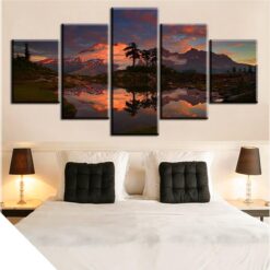 Beautiful Sunset Over The Snowy Mountain – Nature 5 Panel Canvas Art Wall Decor