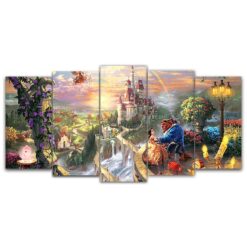 Beauty And The Beast Castle Fairyland Cartoon – 5 Panel Canvas Art Wall Decor