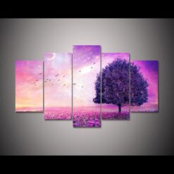 Dreamy Pink Purple Tree – Nature 5 Panel Canvas Art Wall Decor