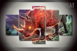 Fiery Rhinoceros – Abstract Animal 5 Panel Canvas Art Wall Decor
