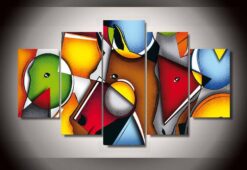 Figure Color Horses Face – Abstract 5 Panel Canvas Art Wall Decor
