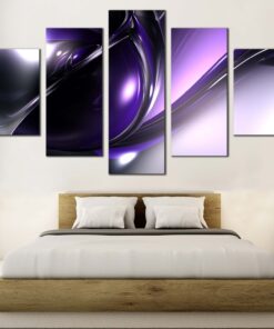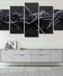 Abstract Patterns , Black Purple 3D Abstract , Beautiful Modern Abstract 5 Piece Canvas Art Wall Decor – Canvas Prints Artwork