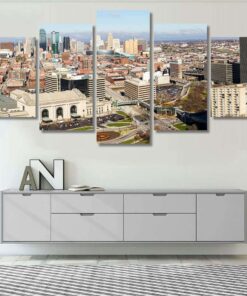 A Large Panoramic View Of Kansas City Missouri During The Daytime 2 – Landscape 5 Piece Canvas Art Wall Decor