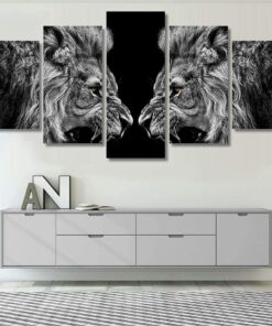 A Roaring Lions Black And White Painting – Abstract 5 Piece Canvas Art Wall Decor
