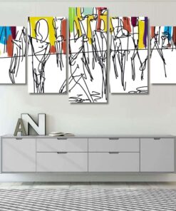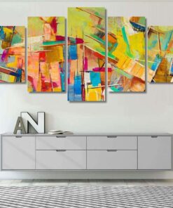Abstract Colorful Oil Painting On Canvas – Abstract 5 Piece Canvas Art Wall Decor