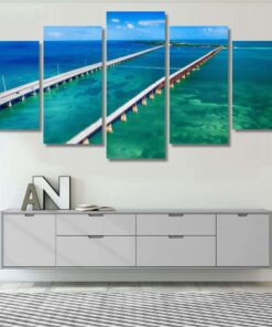 Aerial View Of Bridge Connecting Keys Florida 2 – Nature 5 Piece Canvas Art Wall Decor