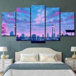 Night Scenery Anime Boy Riding Bicycle Sky City Landscape 5 Piece Canvas Art Wall Decor – Canvas Prints Artwork