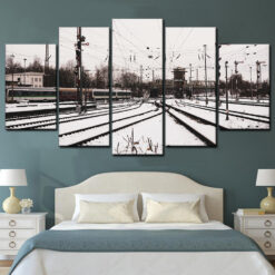 Old Train In Snow 5 Piece Canvas Art Wall Decor – Canvas Prints Artwork