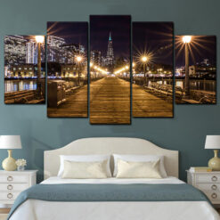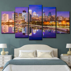 Philadelphia Skyline At Night 5 Piece Canvas Art Wall Decor – Canvas Prints Artwork