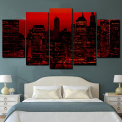 Red Sky At Night New York City 5 Piece Canvas Art Wall Decor – Canvas Prints Artwork