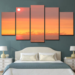 San Francisco Bay Orange Sunrise 5 Piece Canvas Art Wall Decor – Canvas Prints Artwork