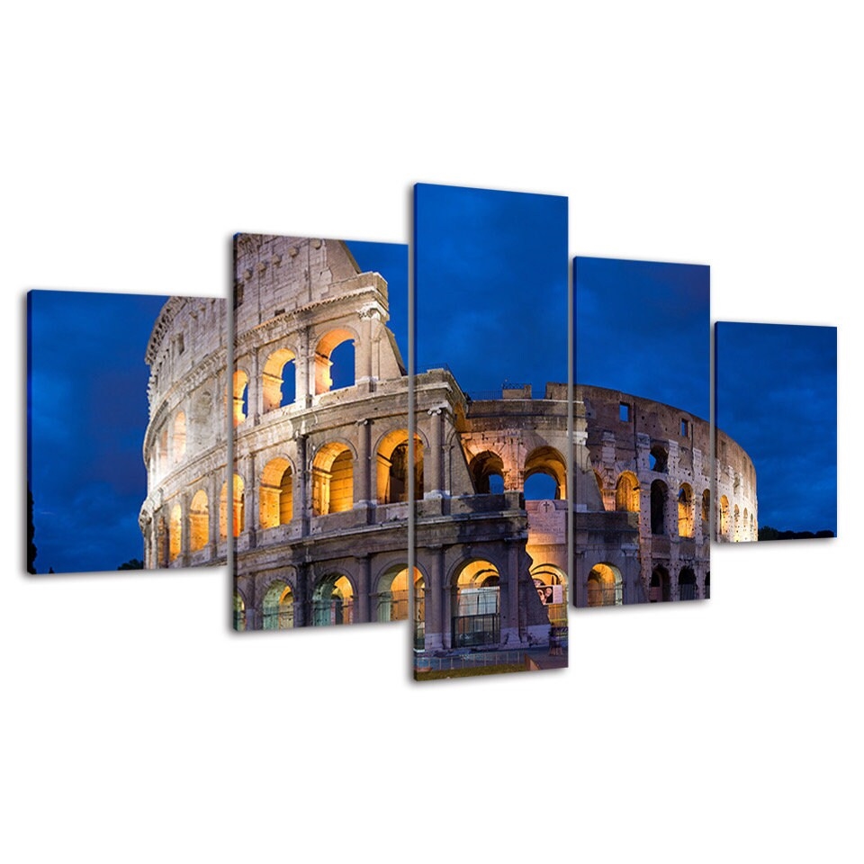 Rome Italy Colosseum Night View Scenery Canvas Wall Art, Framed 5 Panel Canvas Wall Art