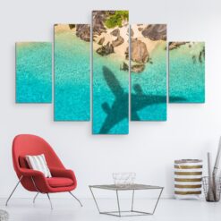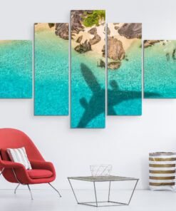 Airplane Shadow Tropical Beach – 5 Piece Canvas Art Wall Decor
