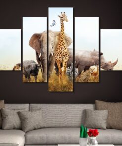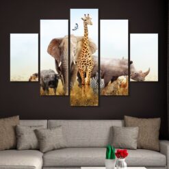 Animal Herd in the Safari – 5 Piece Canvas Art Wall Decor