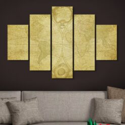 Antique World Map – 5 Piece Canvas Art Wall Decor