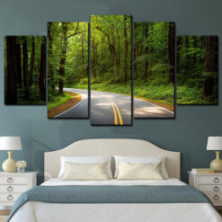 Road Green Trees Forest 5 Piece Canvas Art Wall Decor – Canvas Prints Artwork