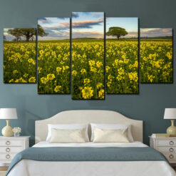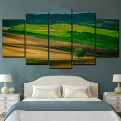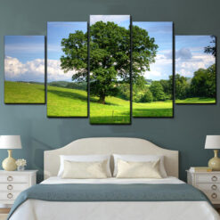 Tree In 5 Field Spring Background 5 Piece Canvas Art Wall Decor – Canvas Prints Artwork