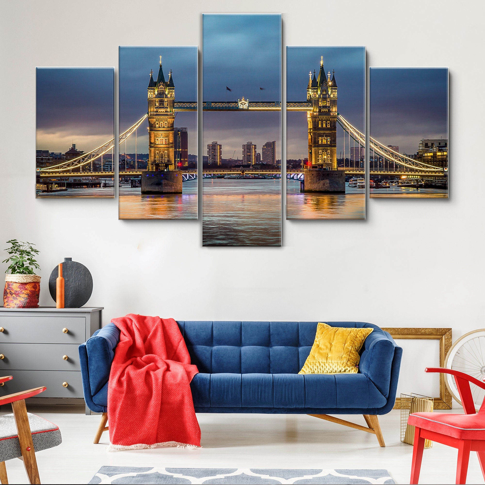 Tower Bridge Canvas Wall Art, Large Framed Canvas Wall Art Extra Large Framed 5 Panel Canvas Wall Art Wrapped Gallery Wall Art
