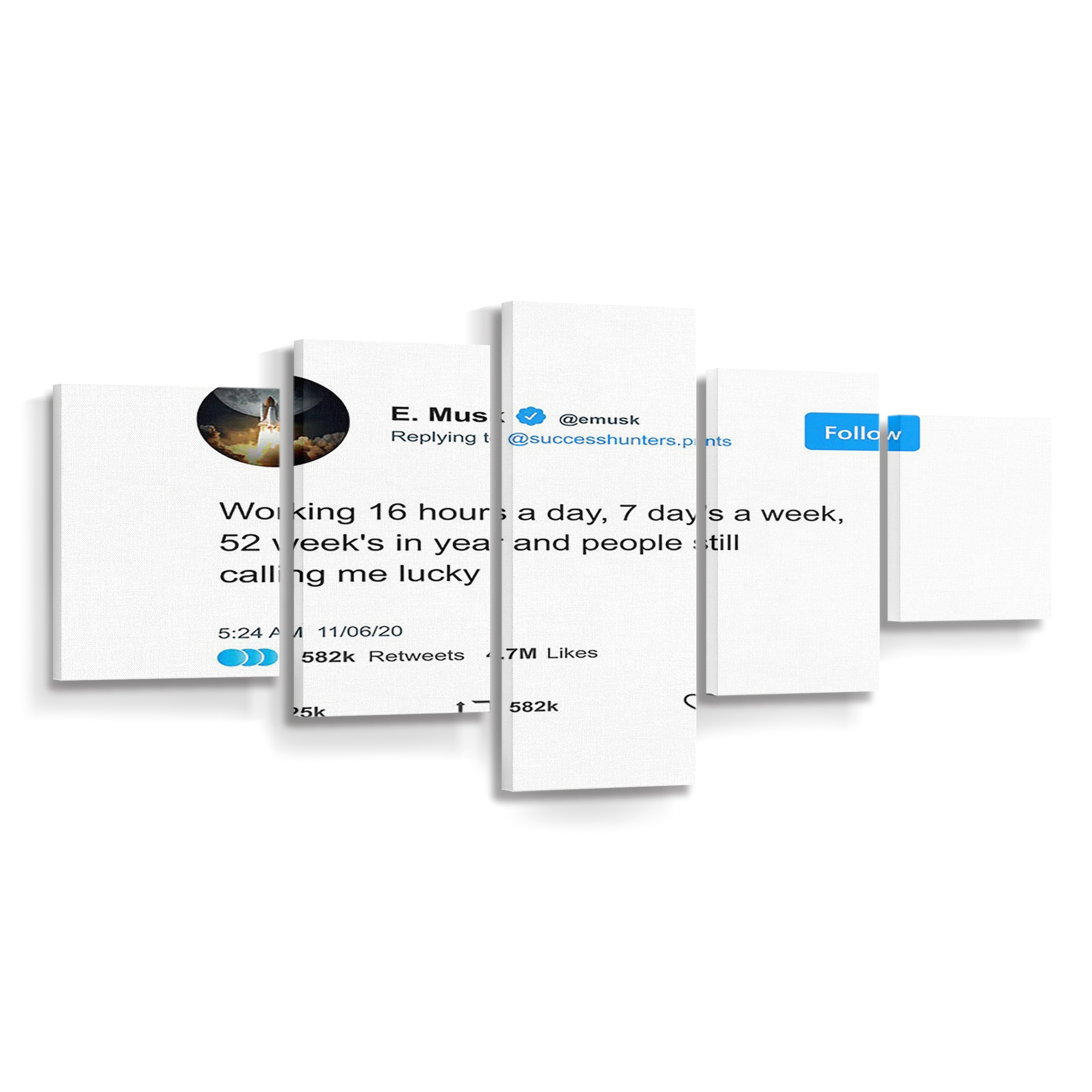 Elon Tweet Working 16 Hours Canvas Wall Art, Quote Canvas, Motivational Wall Art