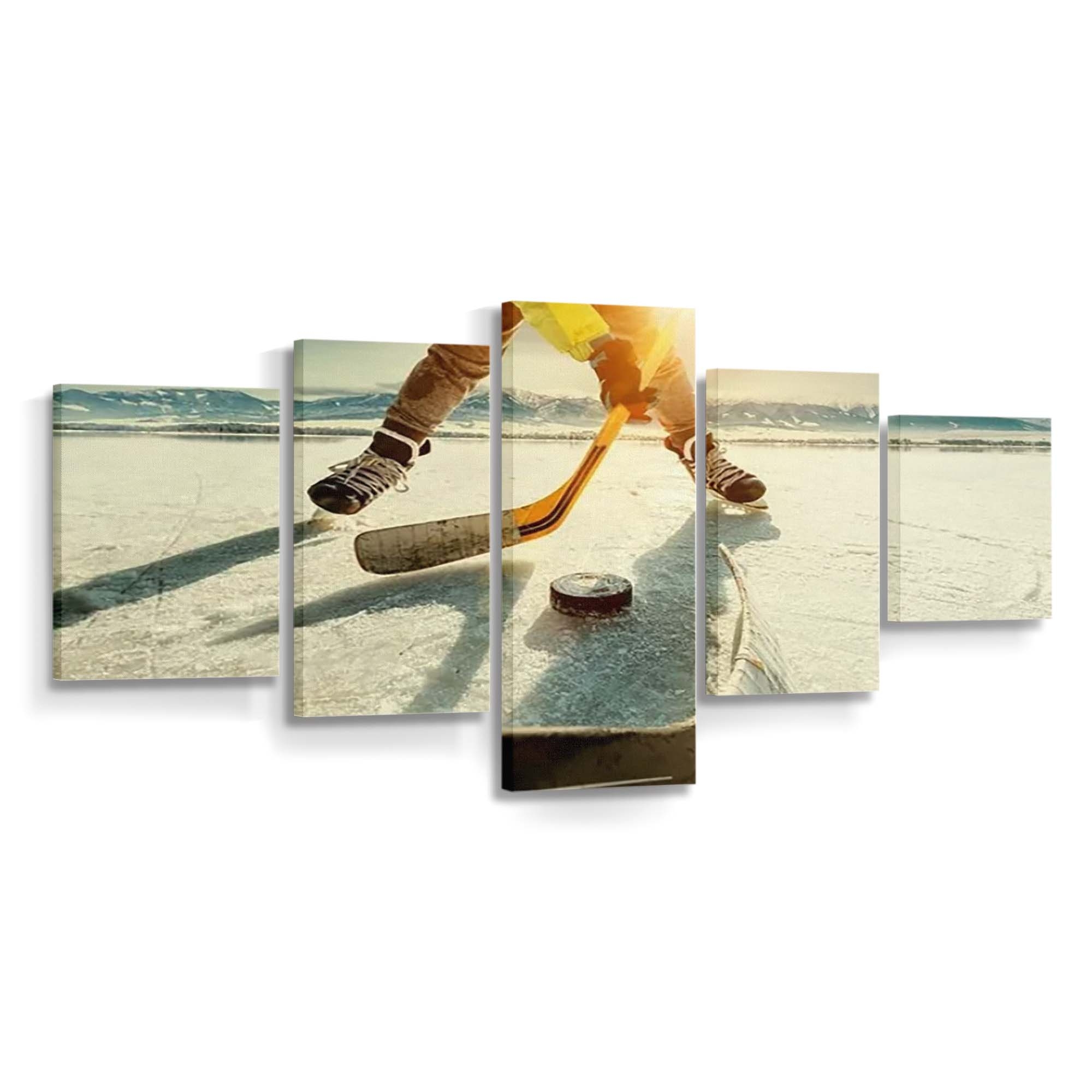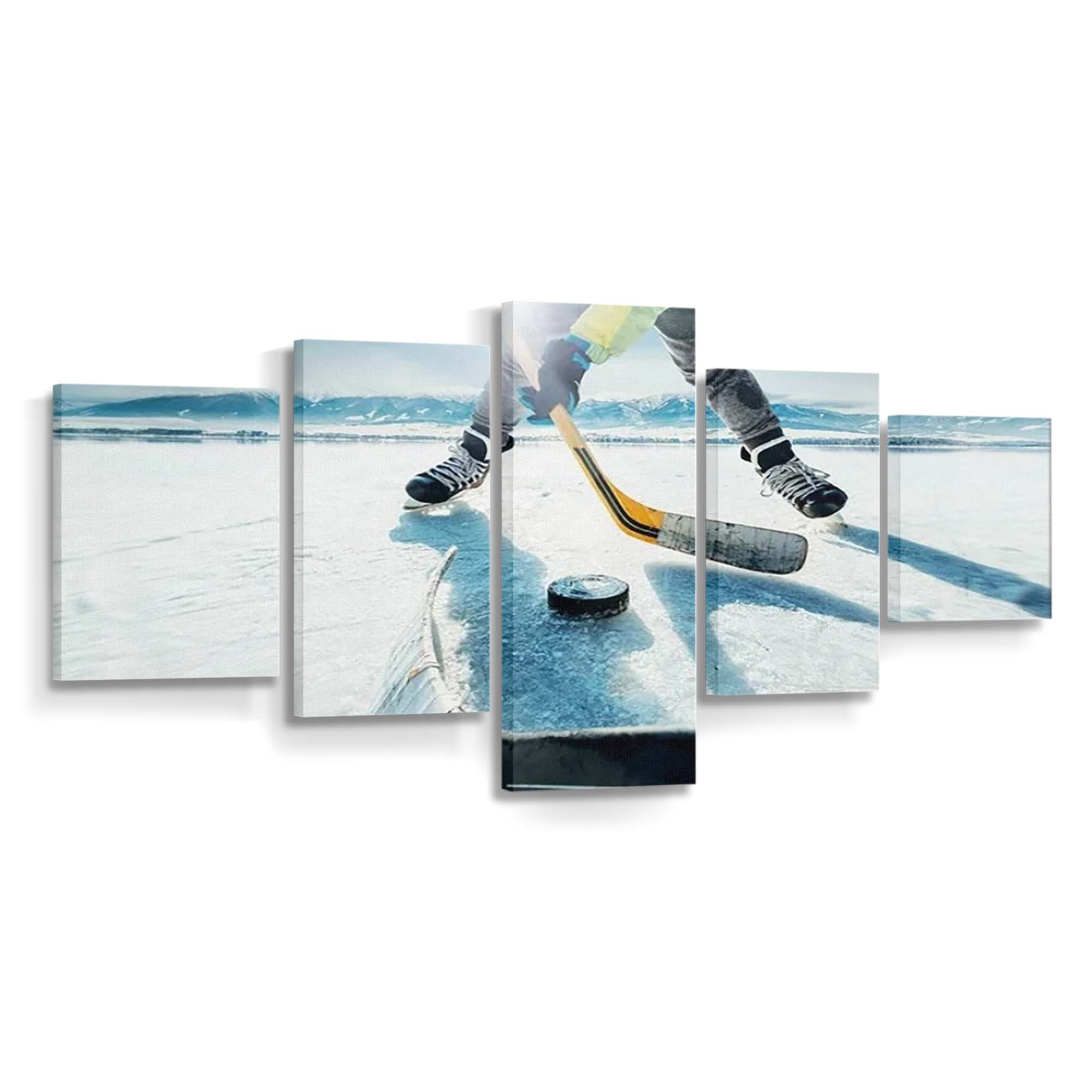 Ice Hockey On The Frozen Lake Game Moment Canvas Wall Art, Bedroom Wall Art, Framed Canvas