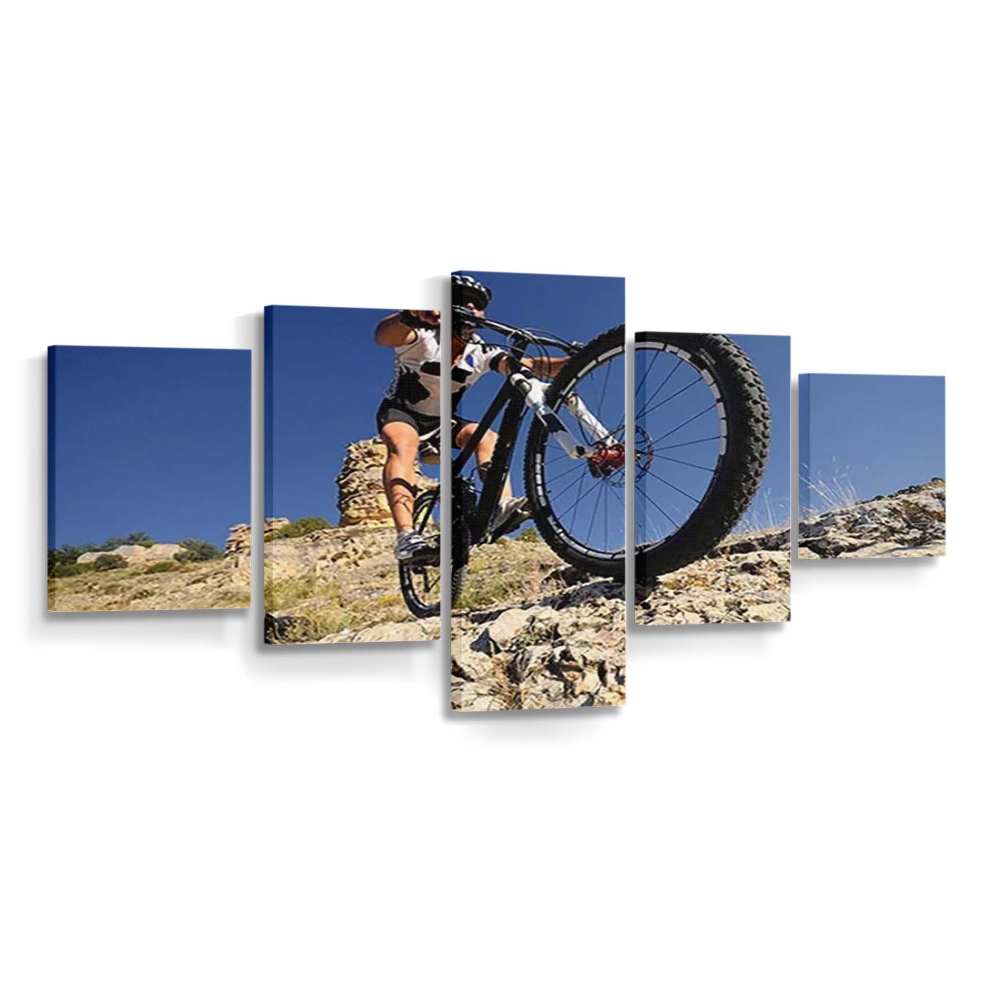 Man On Mountain Bike On The Rock Canvas Wall Art, Bedroom Wall Art, Framed Canvas