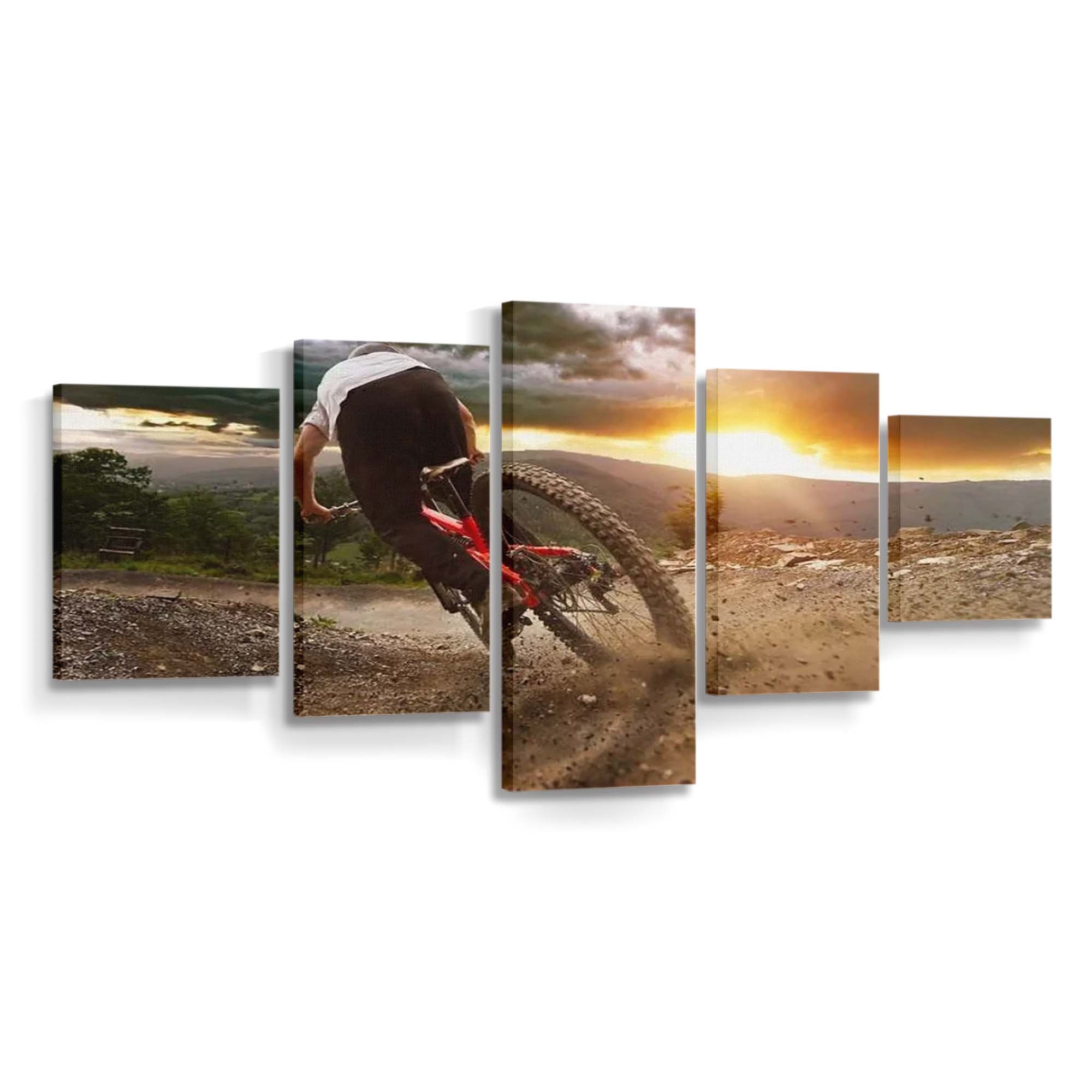 Man On Mountain Bike Rides On The Trail On A Stormy Sunset Canvas Wall Art, Bedroom Wall Art, Framed Canvas