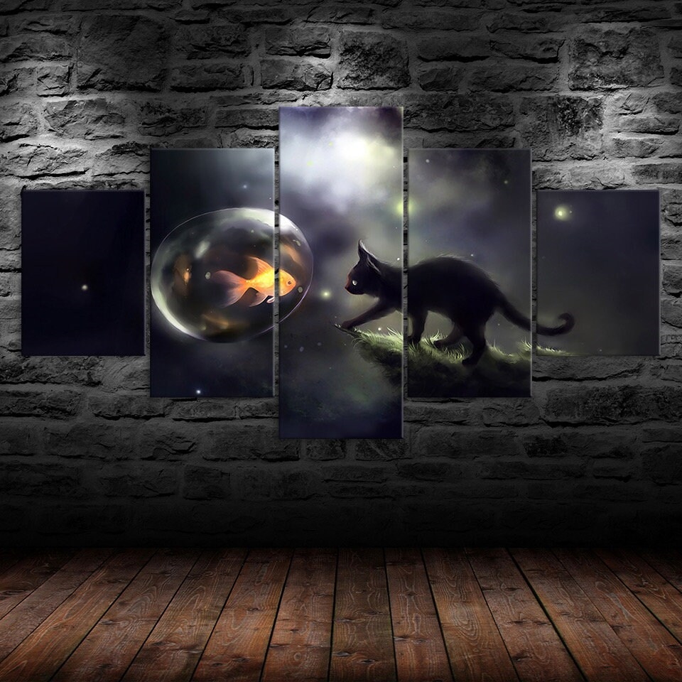 Elevate your home or office with our Black Cat Reaching Fish Bowl Goldfish Canvas Wall Art, Framed 5 Panel Canvas Wall Art, designed to transform your space with style and sophistication. Each piece is crafted to inspire, adding a touch of elegance and personality to your walls. Whether you prefer modern abstracts, serene landscapes, or vibrant designs, our canvases are the perfect way to refresh your decor and create a captivating atmosphere.