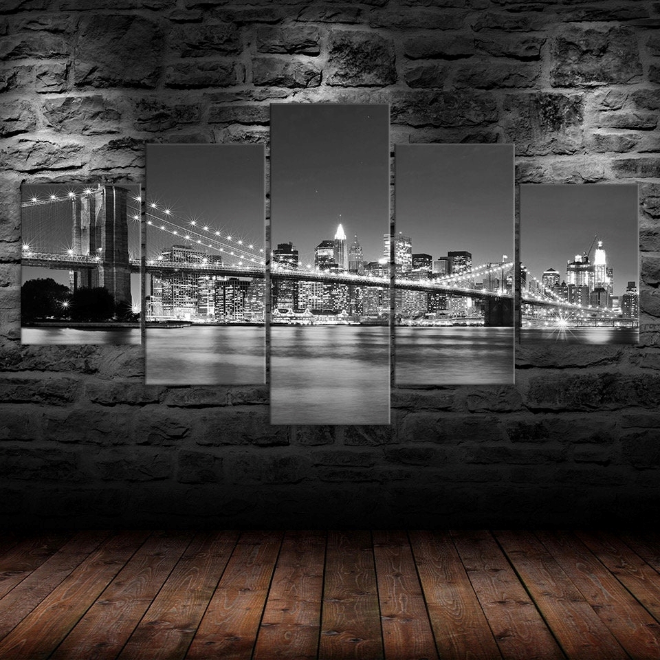 Elevate your home or office with our Brooklyn Bridge Night View Cityscape Black White Picture Canvas Wall Art, Framed 5 Panel Canvas Wall Art, designed to transform your space with style and sophistication. Each piece is crafted to inspire, adding a touch of elegance and personality to your walls. Whether you prefer modern abstracts, serene landscapes, or vibrant designs, our canvases are the perfect way to refresh your decor and create a captivating atmosphere.