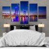 • City Bridge , Orange Memorial Piscataqua River, New Hampshire Blue Night Sky 5 Piece Canvas Art Wall Decor - Canvas Prints Artwork $79.99