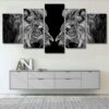 Abstract Black White Wolf Couple 5 Piece Canvas Art Wall Decor – Canvas Prints Artwork
