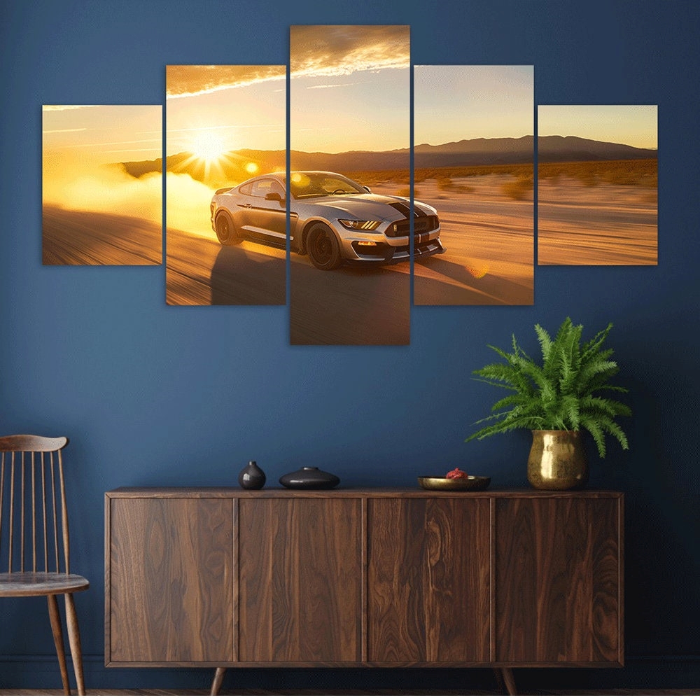 Transform any room into a haven for car lovers with our premium Ford Mustang Sunset Desert Drive 5 Piece Canvas Wall Art Framed Multi Panel Prints Modern Home Decor. Whether you’re passionate about classic muscle cars, modern sports cars, or vintage racing legends, this artwork captures the spirit of the open road and the power of design. It’s more than just decor—it’s a declaration of your lifestyle.