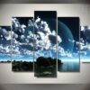 White Clouds Big Bright Moon In Ocean 5 Piece Canvas Art Wall Decor – Canvas Prints Artwork