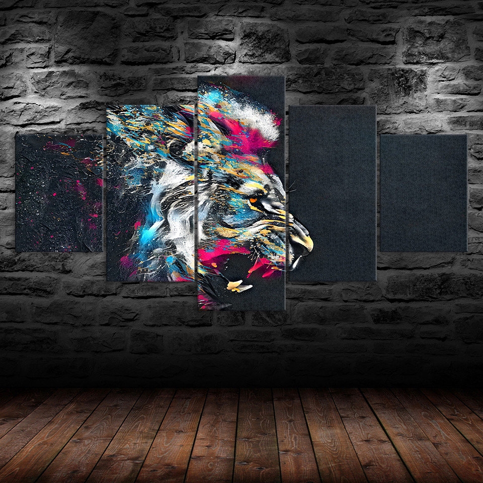 Elevate your home or office with our Lion Face Roaring Colorful Abstract Animal Canvas Wall Art, Framed 5 Panel Canvas Wall Art, designed to transform your space with style and sophistication. Each piece is crafted to inspire, adding a touch of elegance and personality to your walls. Whether you prefer modern abstracts, serene landscapes, or vibrant designs, our canvases are the perfect way to refresh your decor and create a captivating atmosphere.