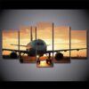 • Golden Sunset Jet Airplane Aircraft – Airplane 5 Panel Canvas Art Wall Decor $79.99