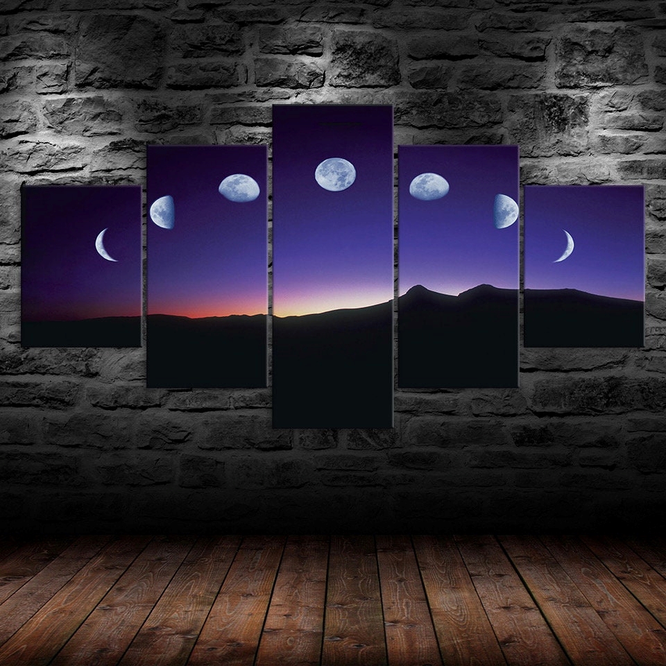 Elevate your home or office with our Moon Lunar Phases Night Sky Mountains Landscape Canvas Wall Art, Framed 5 Panel Canvas Wall Art, designed to transform your space with style and sophistication. Each piece is crafted to inspire, adding a touch of elegance and personality to your walls. Whether you prefer modern abstracts, serene landscapes, or vibrant designs, our canvases are the perfect way to refresh your decor and create a captivating atmosphere.