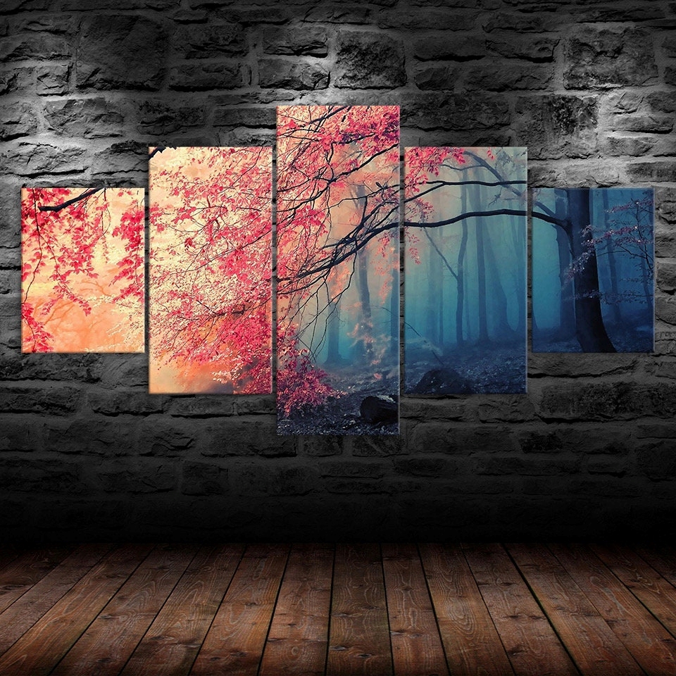 Elevate your home or office with our Red Leaves Tree Mystical Foggy Forest Canvas Wall Art, Framed 5 Panel Canvas Wall Art, designed to transform your space with style and sophistication. Each piece is crafted to inspire, adding a touch of elegance and personality to your walls. Whether you prefer modern abstracts, serene landscapes, or vibrant designs, our canvases are the perfect way to refresh your decor and create a captivating atmosphere.