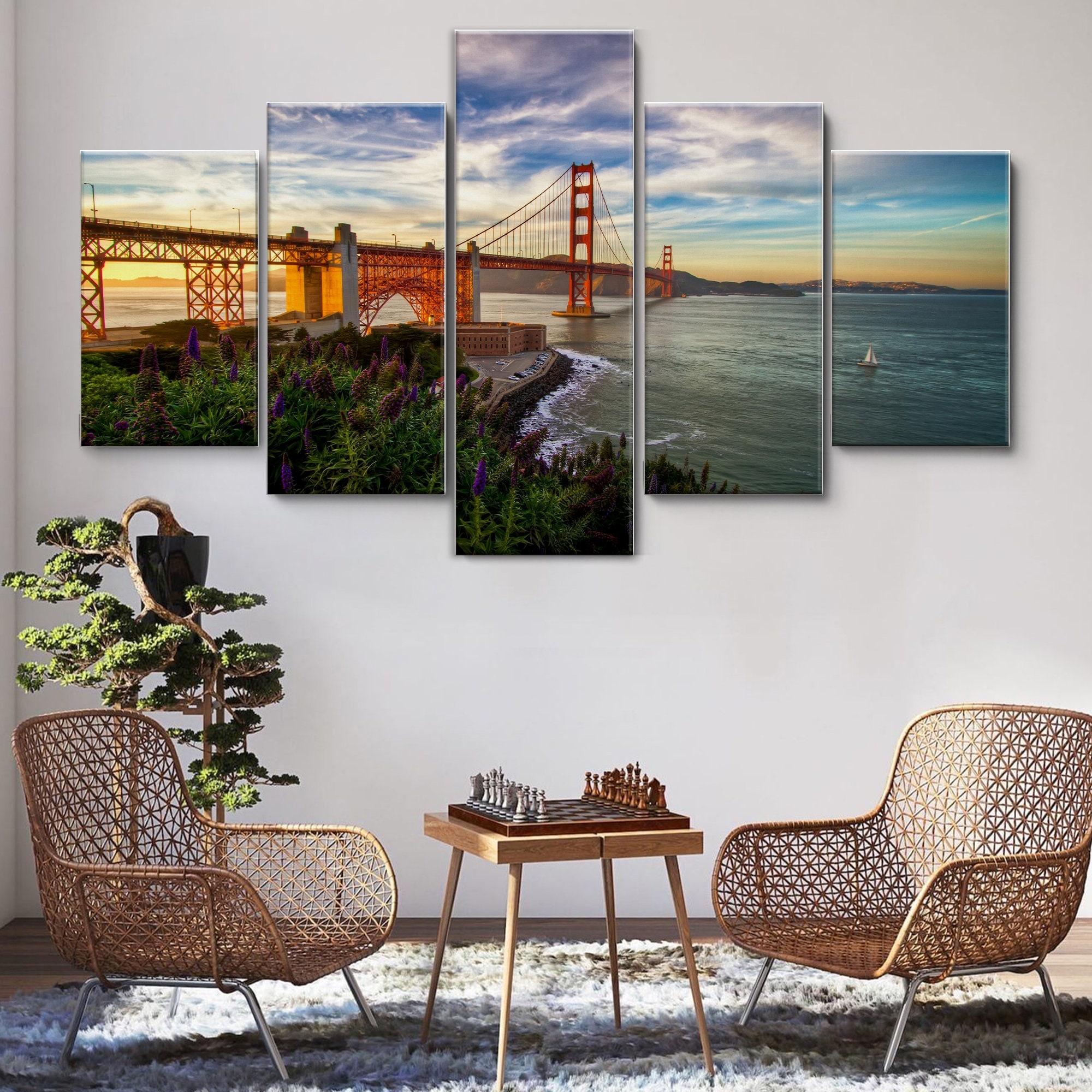 Elevate your home or office with our San Francisco Golden Gate Bridge Canvas Wall Art, Large Framed Canvas Wall Art Extra Large Framed 5 Panel Canvas Wall Art Wrapped, designed to transform your space with style and sophistication. Each piece is crafted to inspire, adding a touch of elegance and personality to your walls. Whether you prefer modern abstracts, serene landscapes, or vibrant designs, our canvases are the perfect way to refresh your decor and create a captivating atmosphere.