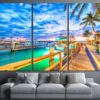 • Sunset over Key West, Florida. Wooden bridge at the port Canvas Art Wall Decor 3 Piece Canvas Prints Artwork $119.99