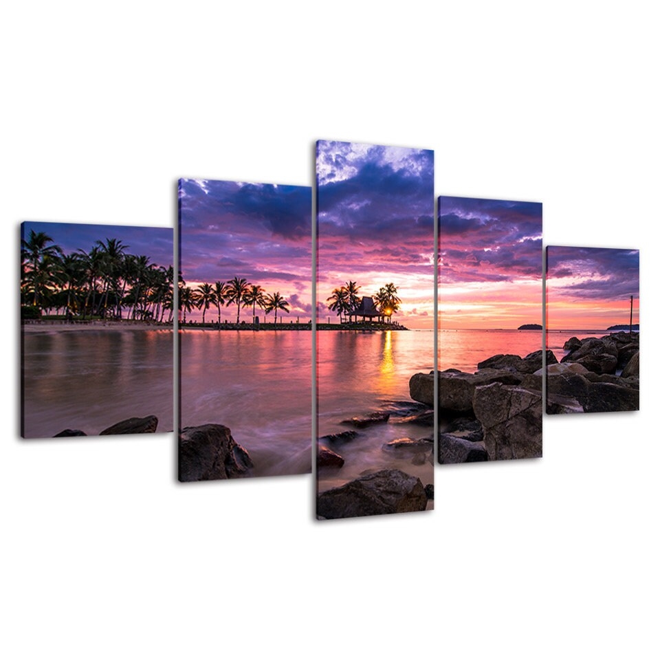 Elevate your home or office with our Tropical Beach Palm Tree Sunset Seascape Canvas Wall Art, Framed 5 Panel Canvas Wall Art, designed to transform your space with style and sophistication. Each piece is crafted to inspire, adding a touch of elegance and personality to your walls. Whether you prefer modern abstracts, serene landscapes, or vibrant designs, our canvases are the perfect way to refresh your decor and create a captivating atmosphere.